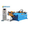 DW-130CNC-2A-1S是一款三维立体全自动单层模两轴数控弯管机,数控弯管机是采用油缸传动齿形链轮的弯曲机构,夹紧、抓料、托料、导模辅推、抽芯均为液压油缸驱动。自动送料Y(轴). 转角B(轴)、为电控伺服电机+精密行星减速机驱动,具有弯管功率大,三轴控制精度高,所有的程序编写及输入均直接在对话式WINDOWS电脑触摸屏上进行,所有的信息操作极为方便、快速、准确。